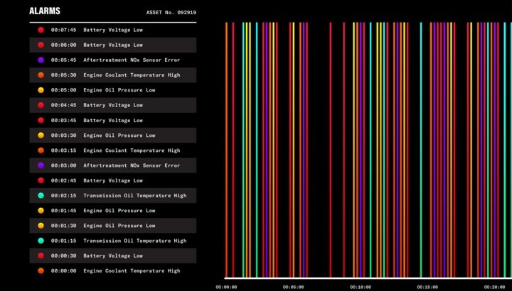 Consider a similar array of alarms and fault codes from multiple machines (Figure 3). Additionally, as data is pulled from an entire fleet, the subject matter expert would not only need to recognize a single pattern; but many patterns that could be indicative of future failures. In Figure 4 many different patterns point to the same issue and so are recognized.