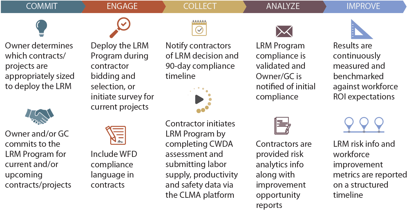 The owners’ Labor Risk Management (LRM) Program is a full-service contractor pre-qualification and risk analytics system designed for owners to effectively evaluate contractors for workforce training and development (WFD) capability. The objective is to: