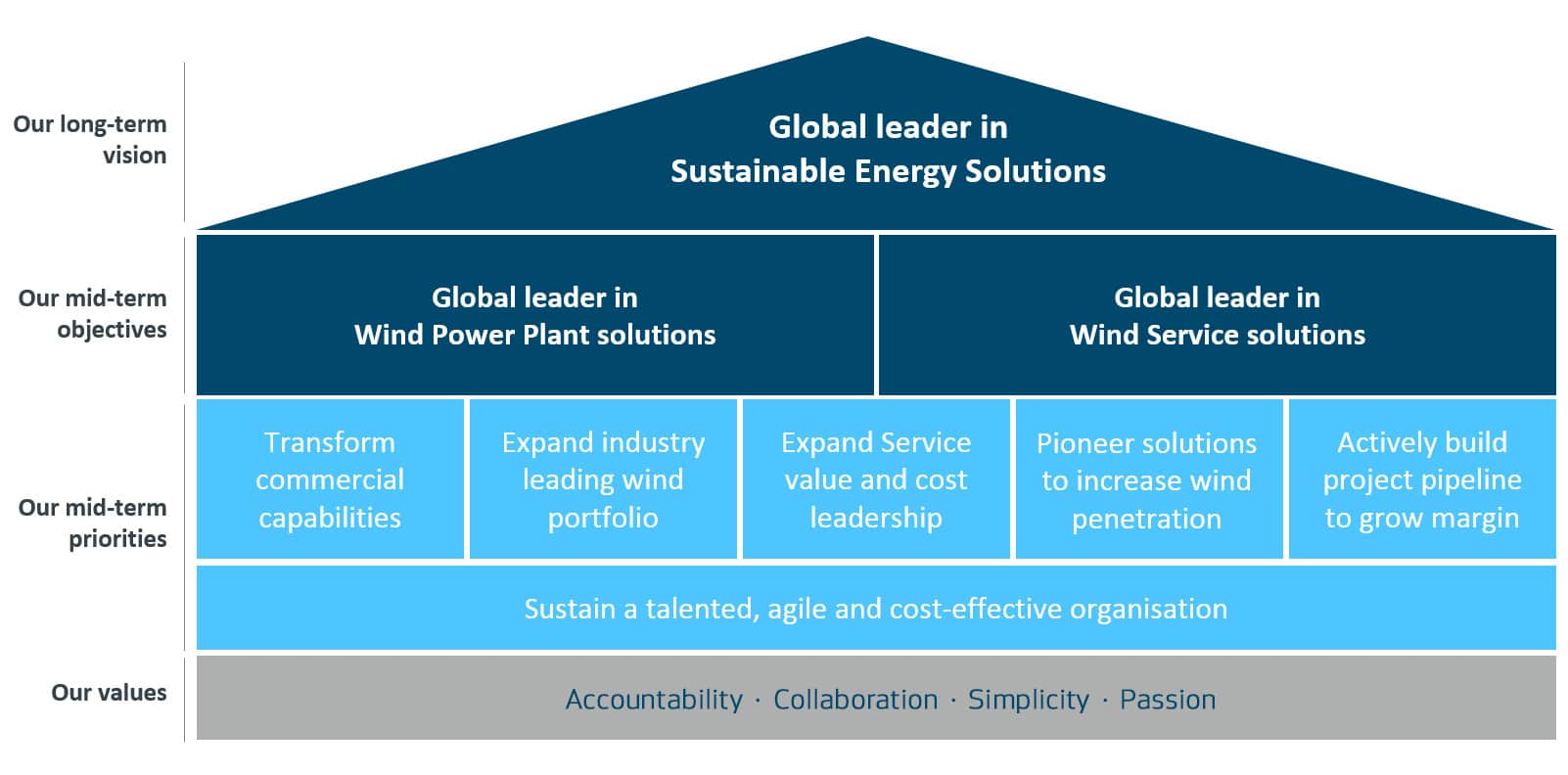In response, Vestas, which employs lean principles in its manufacturing process, has taken the same approach with its capital delivery process, breaking the process down into components that can be analyzed for waste and value. This allows the company to be more creative in its delivery. The company’s strategy is all about accountability, collaboration, simplicity, and passion.